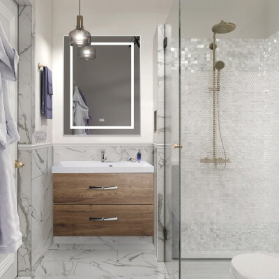 BelBagno Тумба подвесная с раковиной из литьевого мрамора AURORA 80 Rovere Tabacco