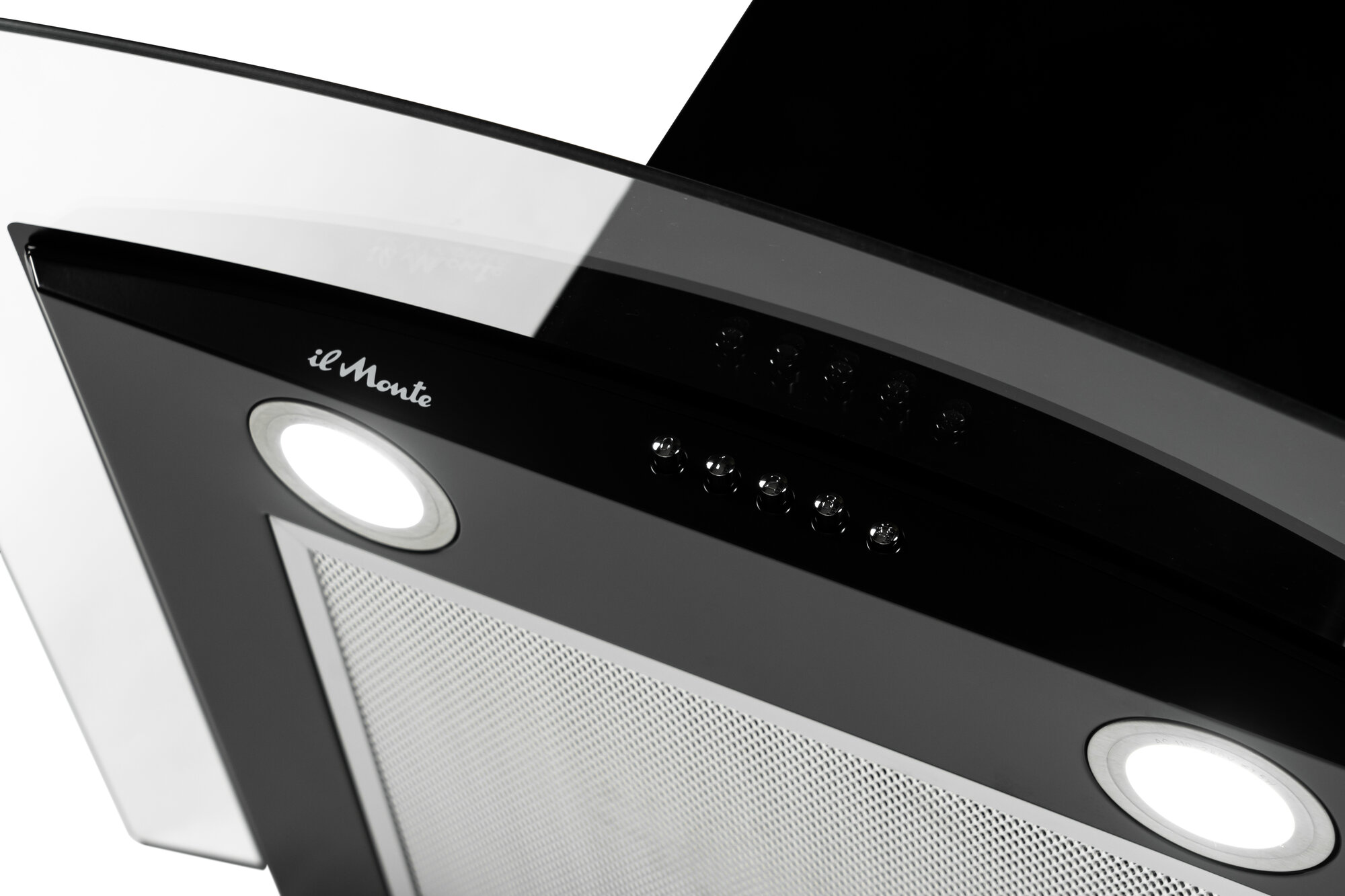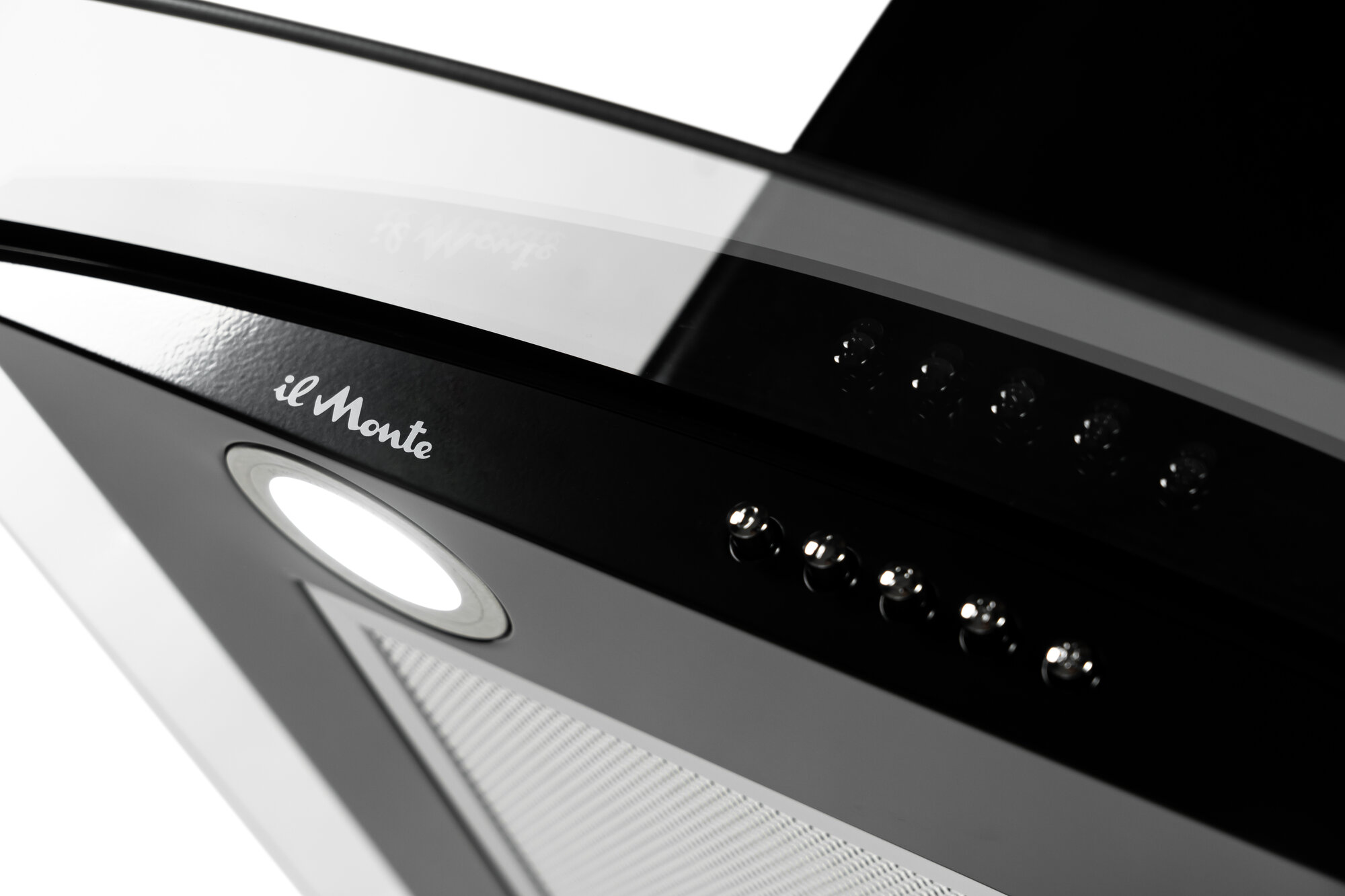 Купить Вытяжка кухонная каминная декоративная Мотор 190 Вт., 800 м3/ч. 3 скорости, воздуховод 150 мм. Гофра il Monte KH-GLASS 6003 BL