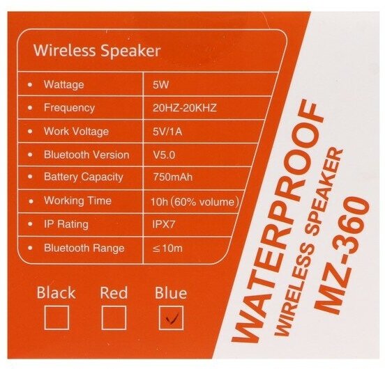 Портативная колонка INWA AS-63, 5 Вт, 750 мАч, водонепроницаемая, крепление на руль, синяя интересное: