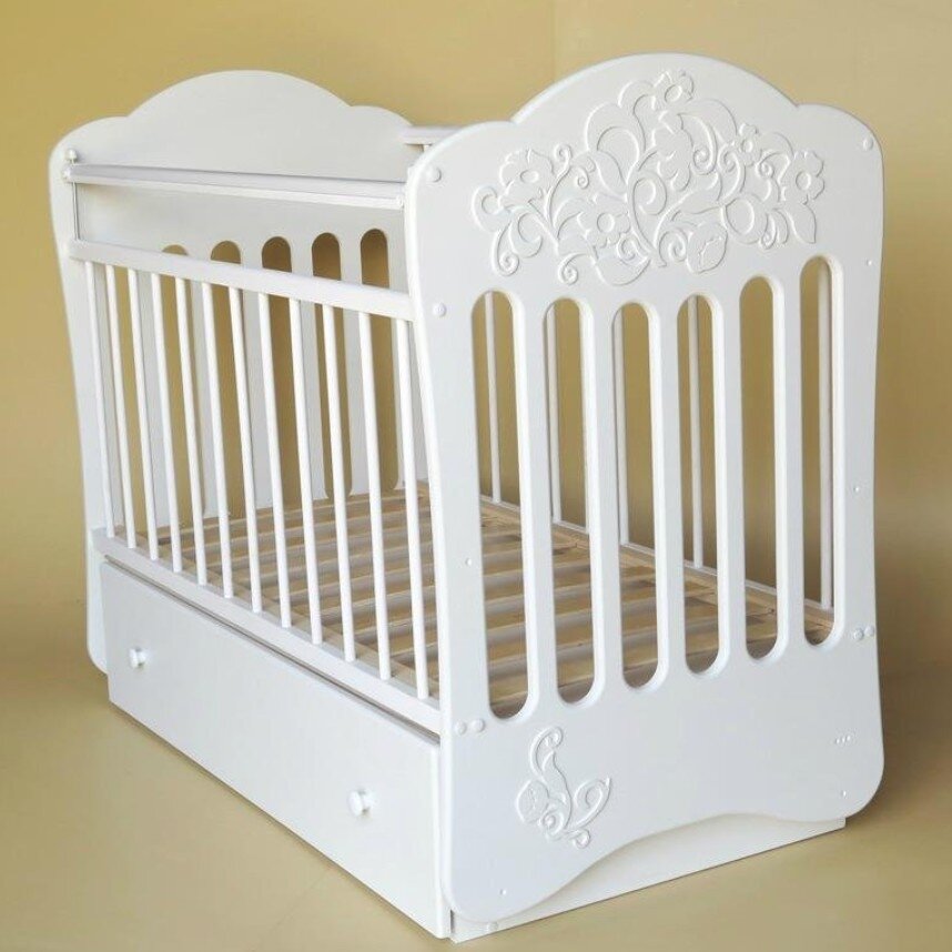 Купить Детская кроватка Островок уюта Виола с поперечным маятником и ящиком - белый