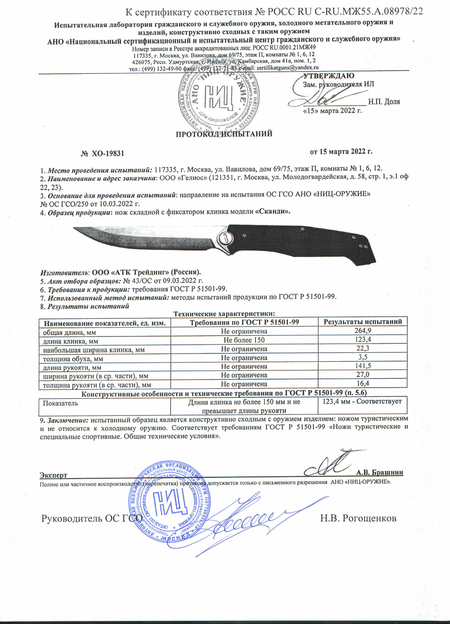 | Характеристики ножа | |