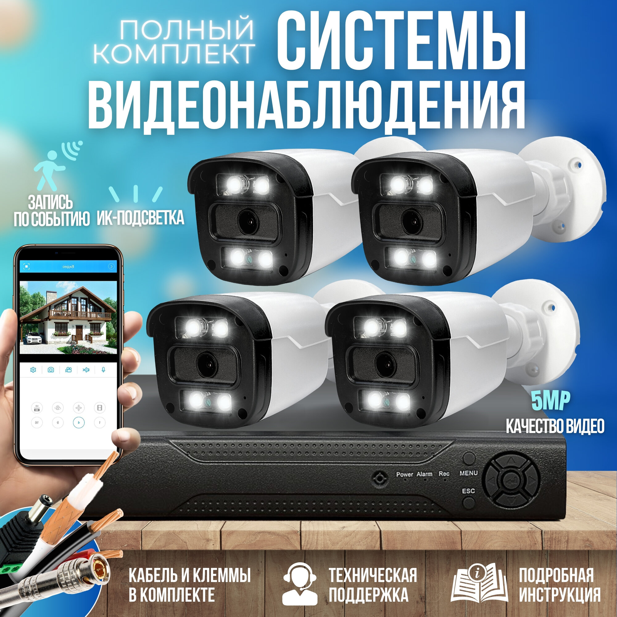 Готовый комплект AHD видеонаблюдения 4 камеры 5MP ST-KIT-A45HD интересное: