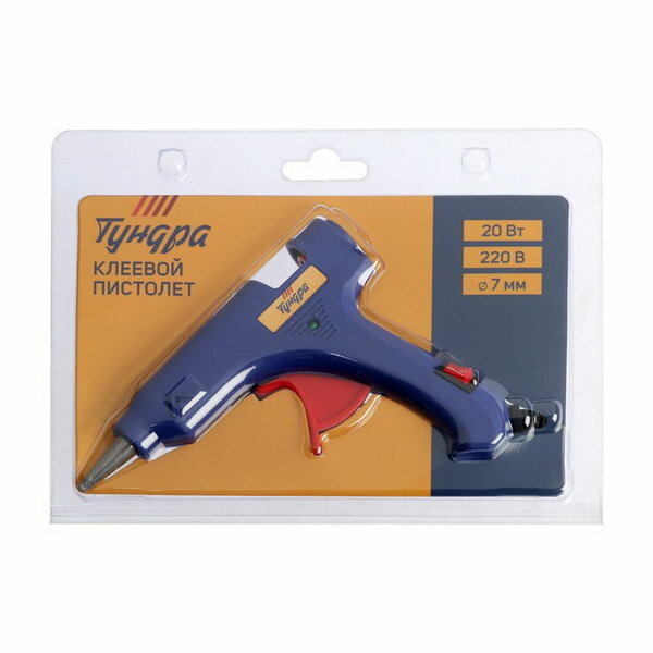 Клеевой пистолет тундра 20 Вт 220 В шнур 1.2 м выключатель индикатор антикапля 7 мм