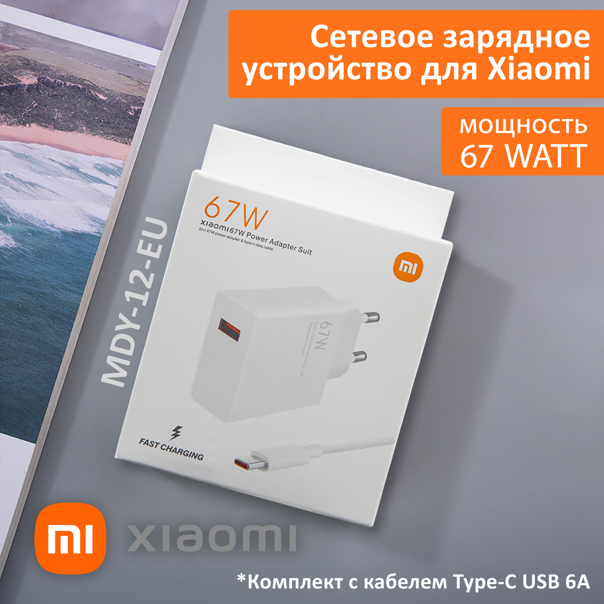 Сетевое зарядное устройство для Xiaomi 67W. Charger адаптер с USB входом (MDY-12-EU) в комплекте с кабелем Type-C USB 6A