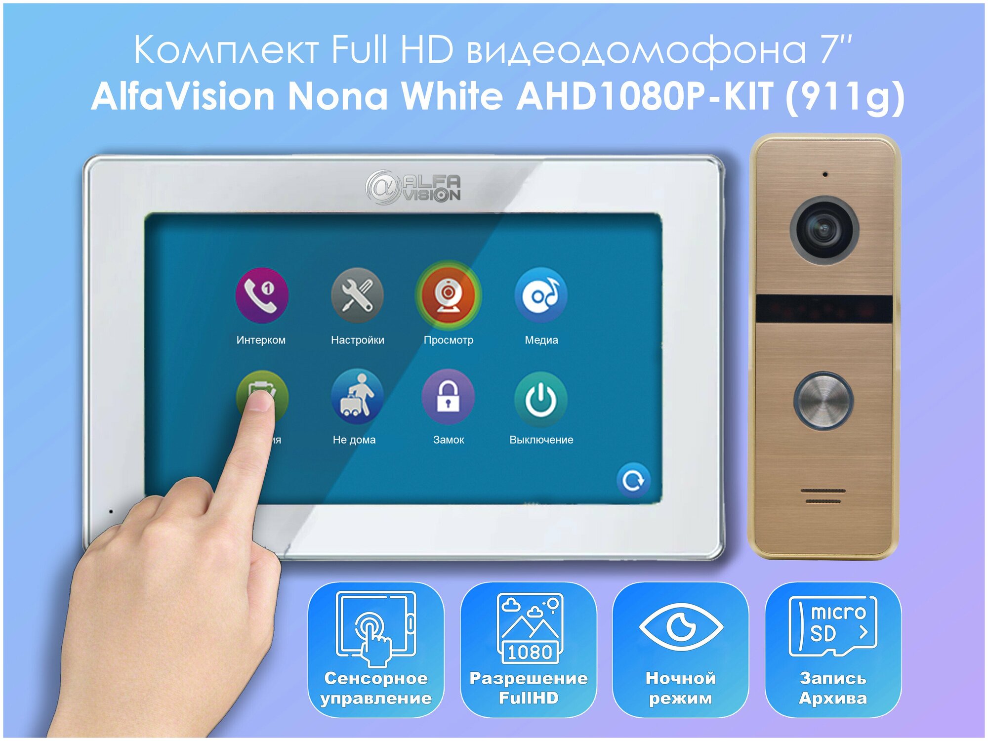 Комплект видеодомофона Nona White-KIT (911g) Full HD 7 дюймов, / в квартиру / в подъезд / для частного дома интересное: