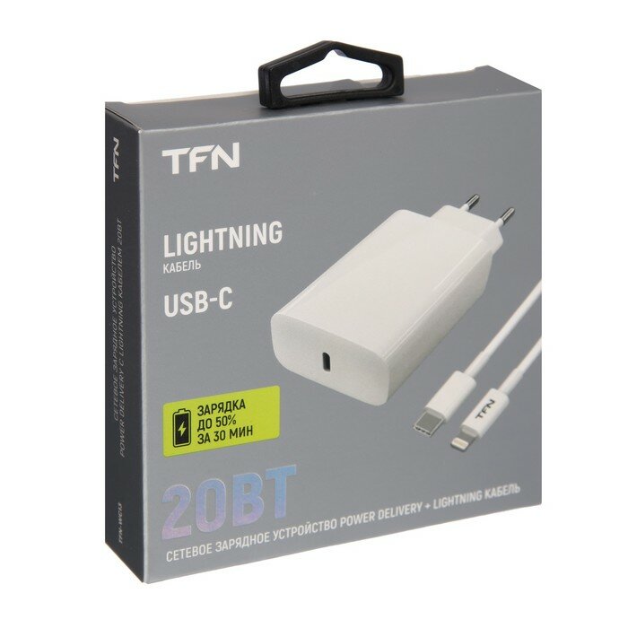 Сетевое зарядное устройство TFN RAPID WC13, 3A, 20 Вт, кабель Lightning, быстрая зарядка интересное: