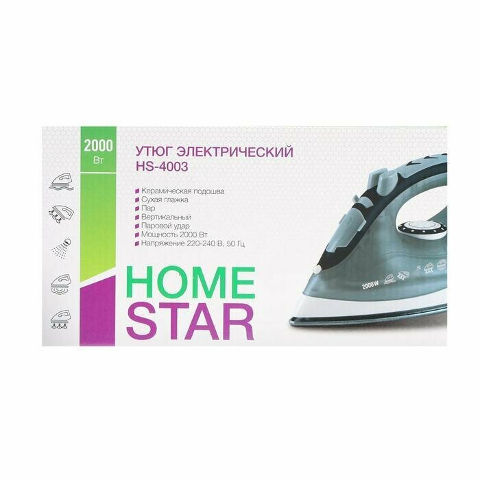 Утюг HOMESTAR HS-4003, 2000 Вт, керамическая подошва, 200 мл, бело-красный интересное: