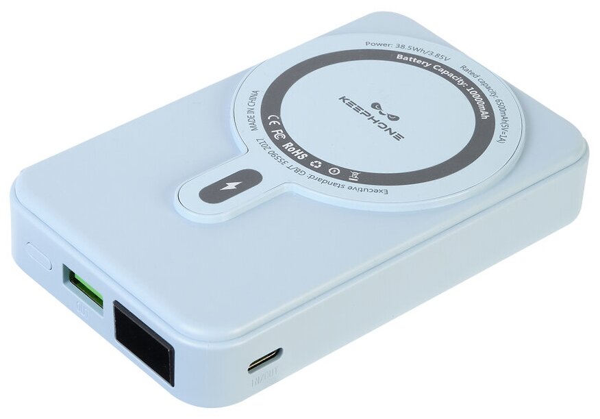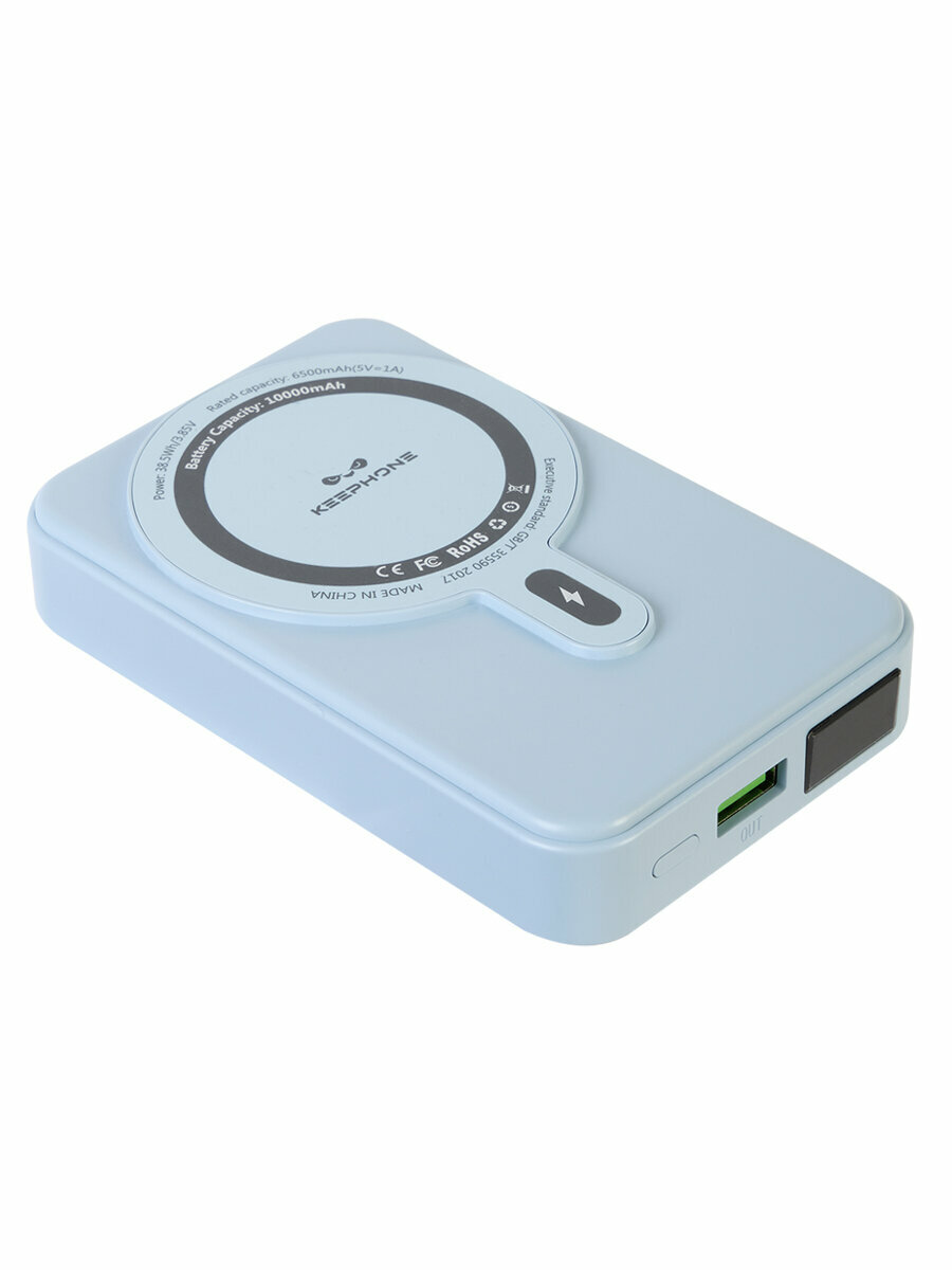 Повербанк с беспроводной зарядкой для телефона KEEPHONE / Быстрая зарядка аккумулятора: 10000 мАч, подставка — Синий
