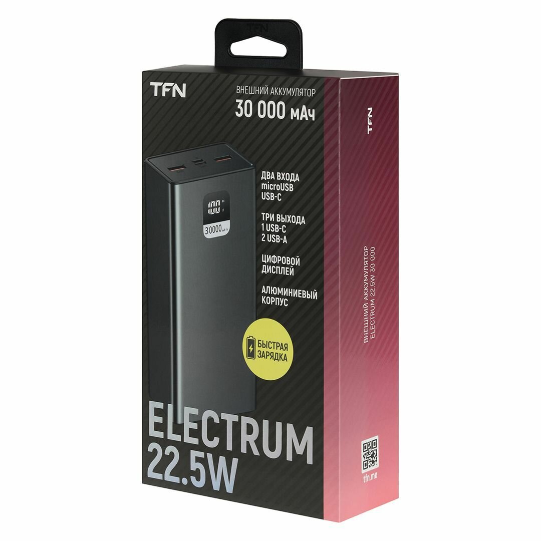 Внешний аккумулятор TFN Electrum 30 000 mAh Black (TFN-PB-296-BK)