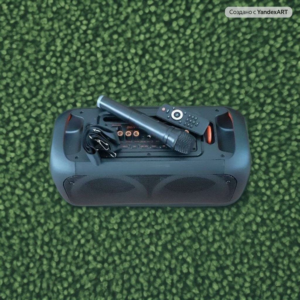 Колонка акустическая портативная бумбокс (Караоке) POWERFUL 1176 /подсветка/пульт/микрофон/bluetooth/ AUX/Usb/micro-CD/FM/Аудио вход/Ремень переноски интересное: