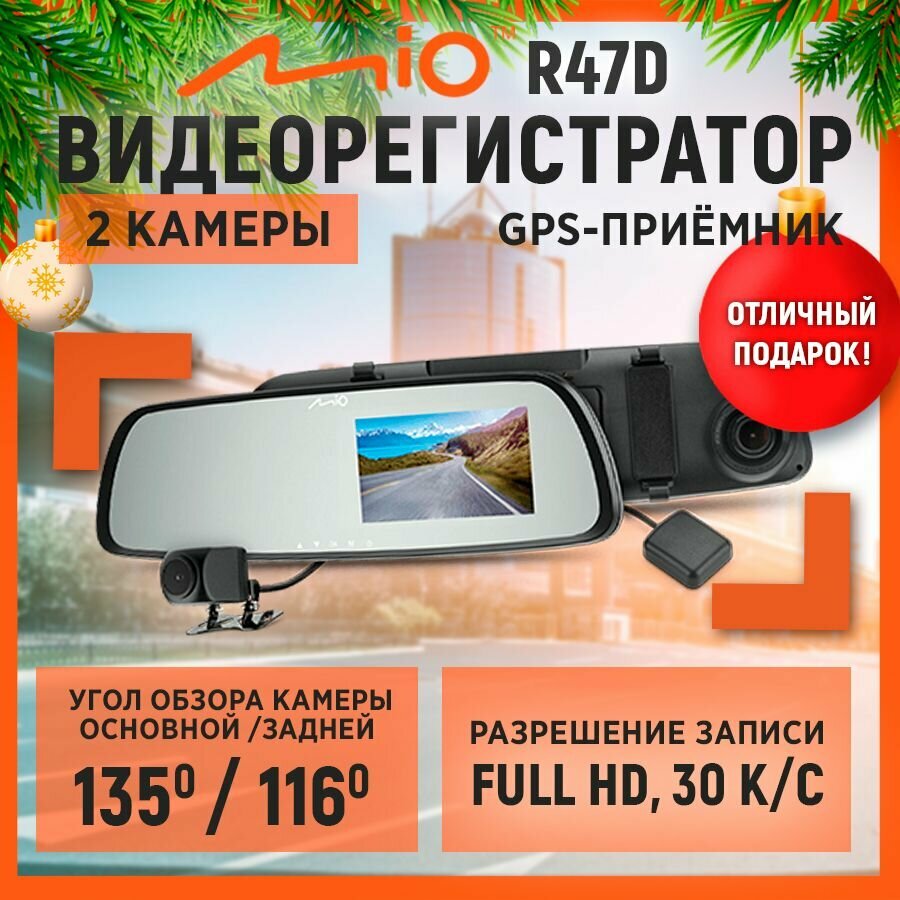 Видеорегистратор Mio R47D, автомобильный, с GPS, FullHD, G-sensor, 4.3", камера заднего вида, предупреждение о камерах, камера заднего вида