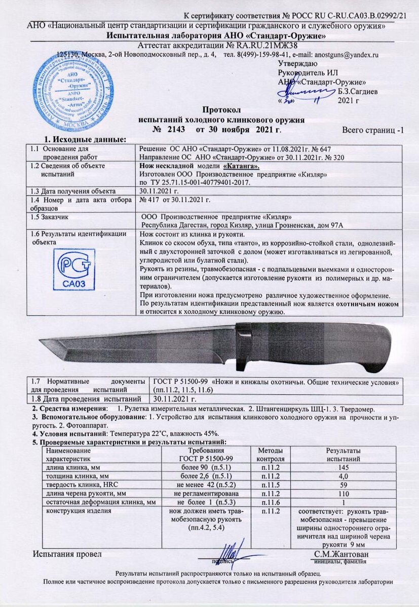 Нож Кизляр "Катанга-2" 014362 артикул 03051 интересное: