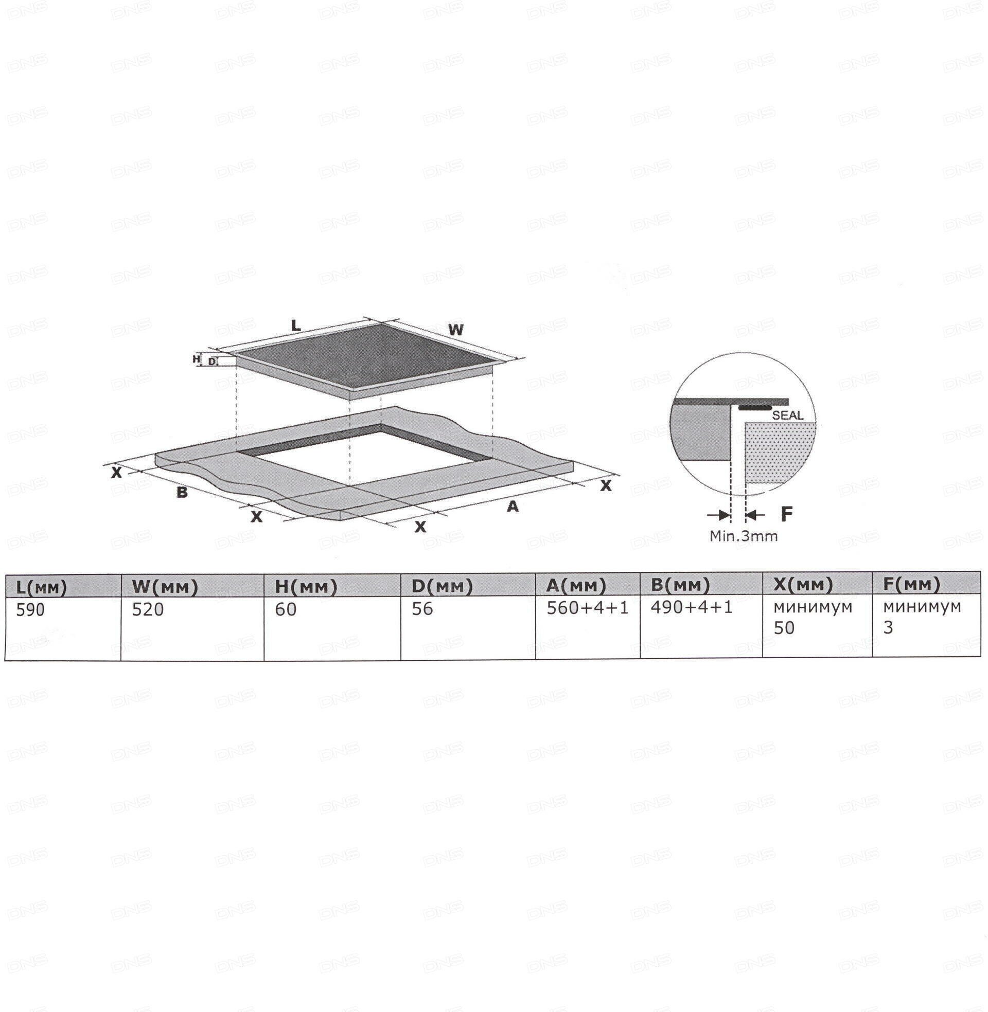 | Ширина для встраивания | 56 см |