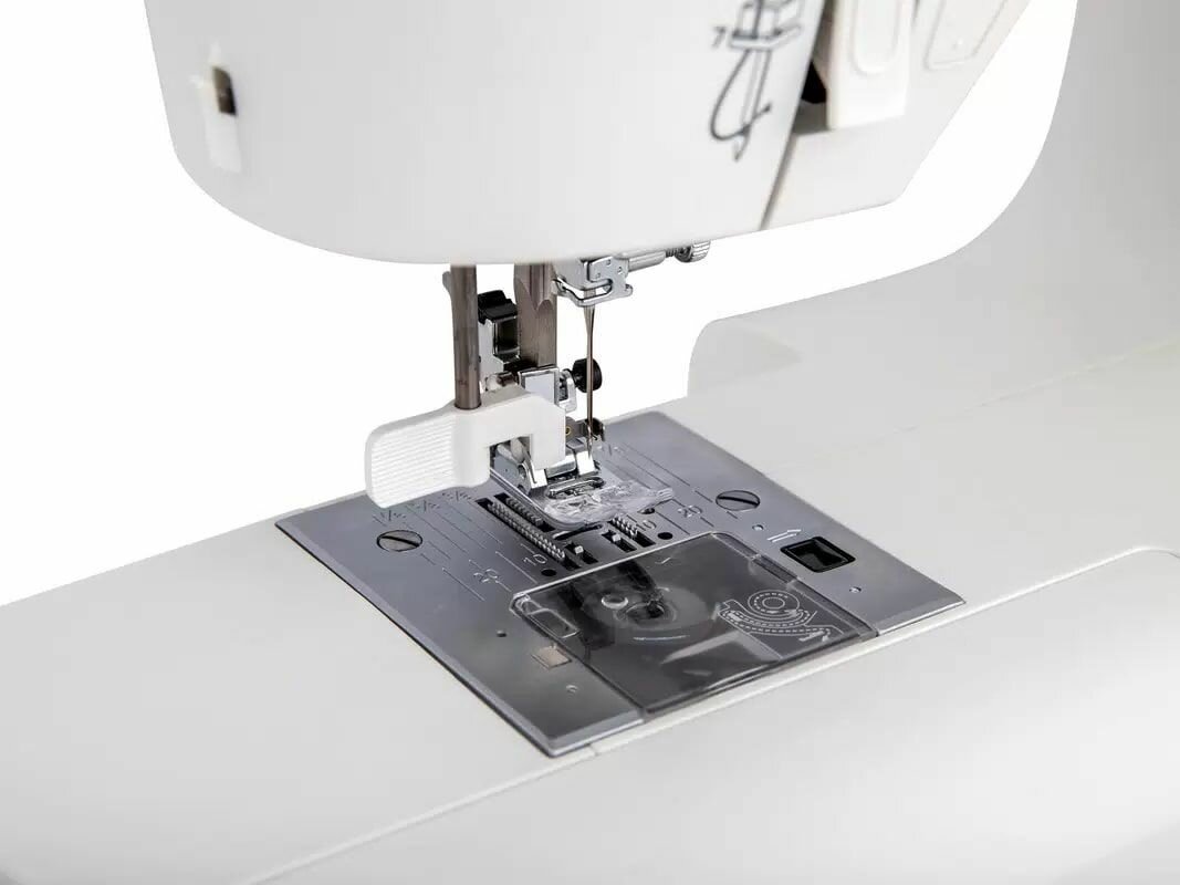 | Дополнительные функции | автоматическая остановка иглы в верхнем положении, автоматический обрезатель нити, автоматическое закрепление строчки, верхний транспортер ткани, кнопка реверса, отключение механизма подачи ткани |