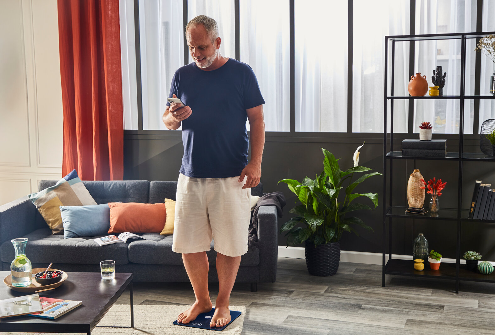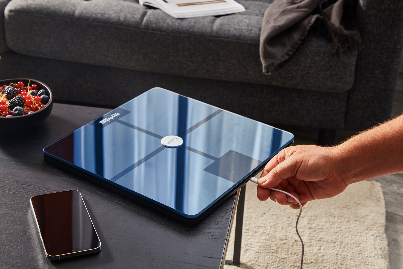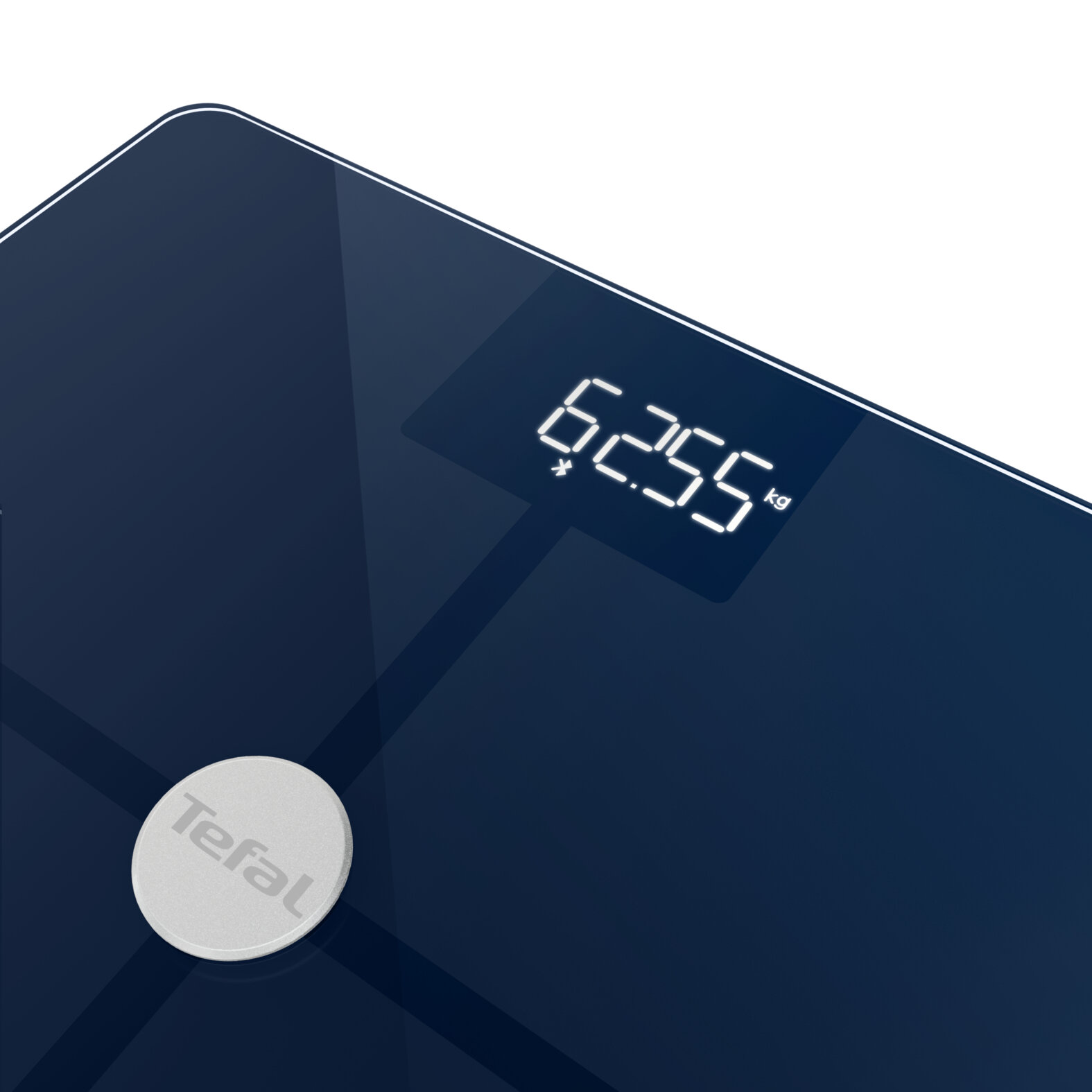 Умные весы напольные Tefal Goodvibes Essential BM9610S1, голубой, максимальный вес 160 кг, возможность синхронизации с телефоном, автовключение, автоотключение