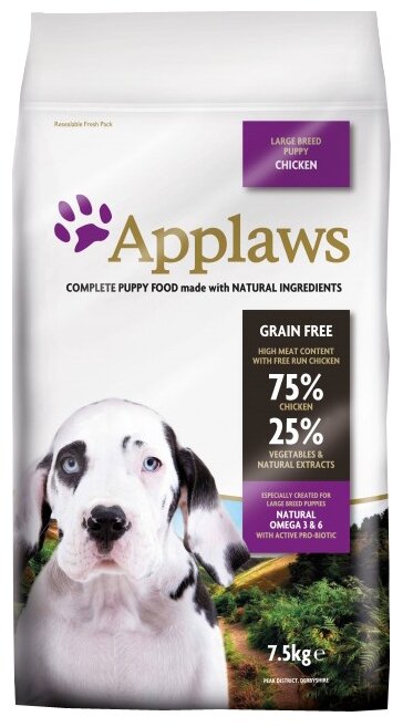 Купить Applaws Беззерновой для Щенков крупных пород "Курица/Овощи: 75/25%" (Dry Dog Chicken Large Breed Puppy) 7.5кг