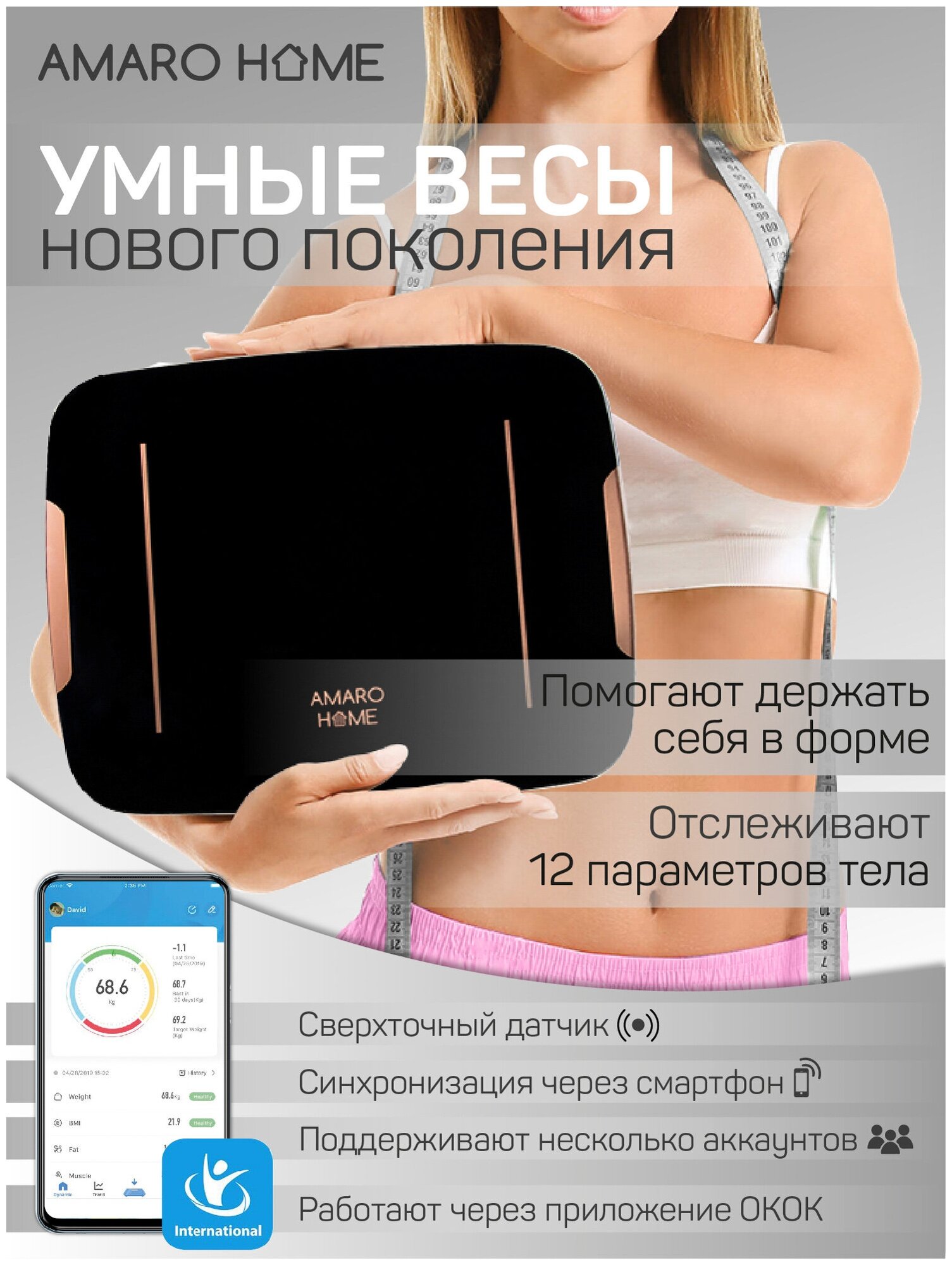 Умные весы AMARO HOME for the body,модель AHFB-00/09-черная интересное: