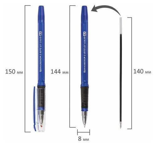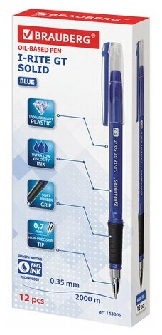 Ручка шариковая масляная с грипом BRAUBERG "i-Rite GT Solid", комплект 100 шт., синяя, корпус синий, узел 0.7 мм, 143305 интересное: