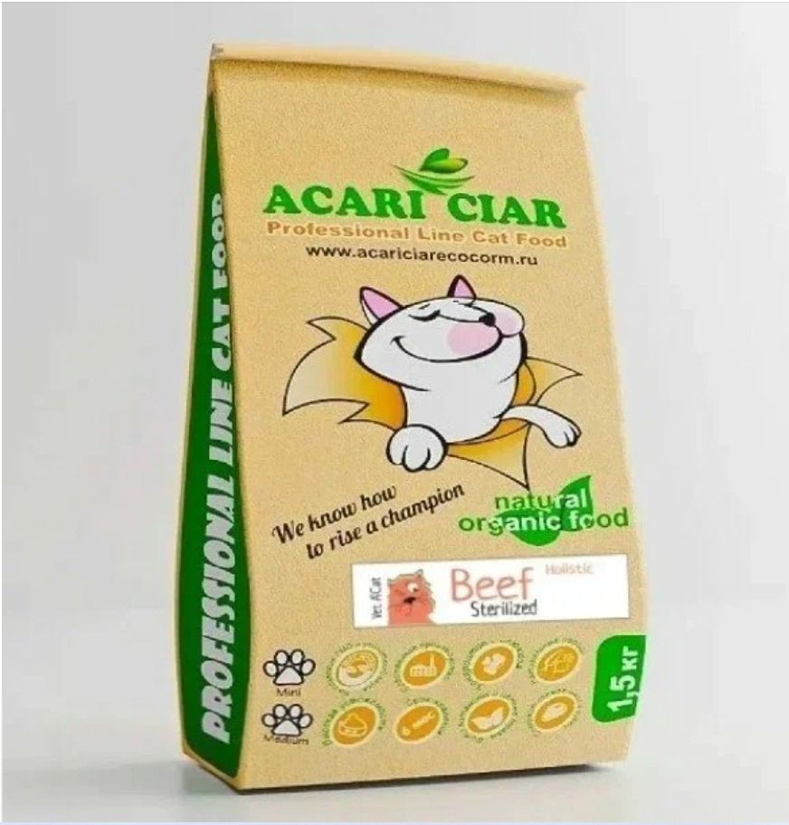 Сухой корм Acari Ciar для стерилизованных кошек Vet A'Cat Sterilized Beef 1,5кг Акари Киар с телятиной интересное: