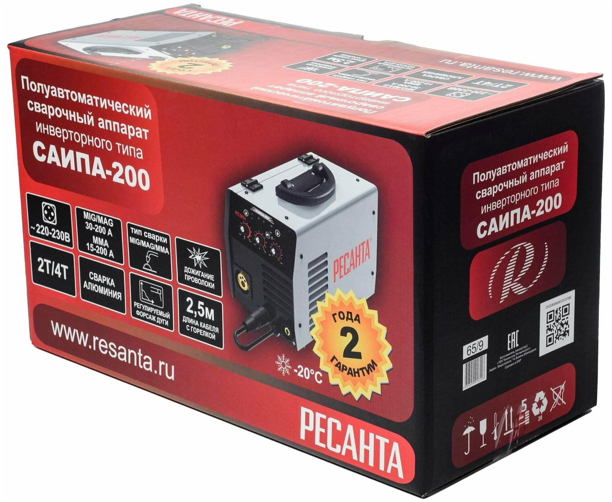 Купить Сварочный аппарат Ресанта САИПА-200 полуавтоматический , 200 ампер, комплект кабелей + угольник В подарок