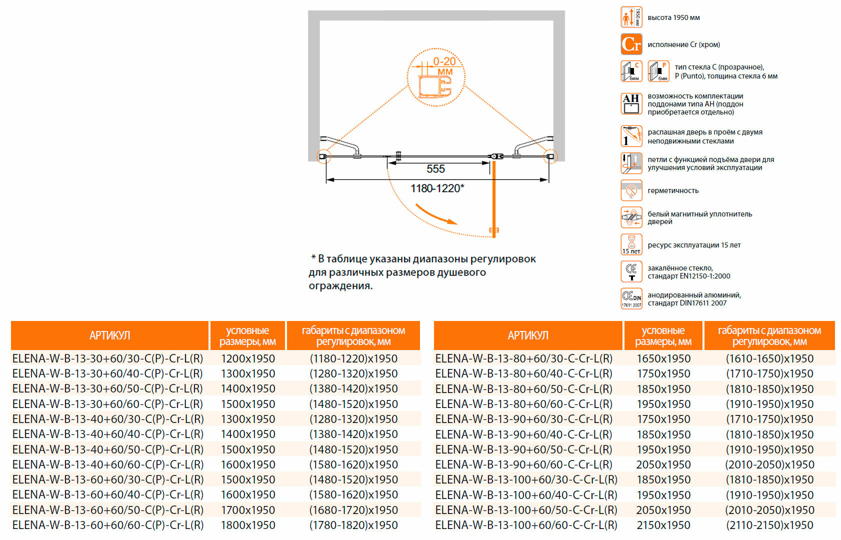 Душевая дверь CEZARES ELENA-W-B-13-80+60/40-C-Cr интересное: