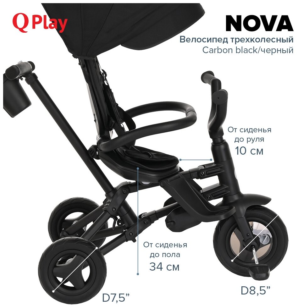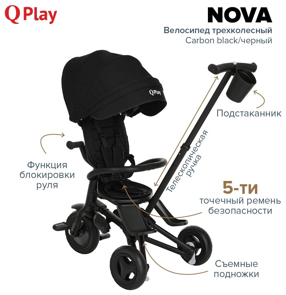 СохранитьТрехколесный складной велосипед-коляска с поворотной сидушкой Qplay Nova 2023 без рюкзак Carbon black/черный интересное:
