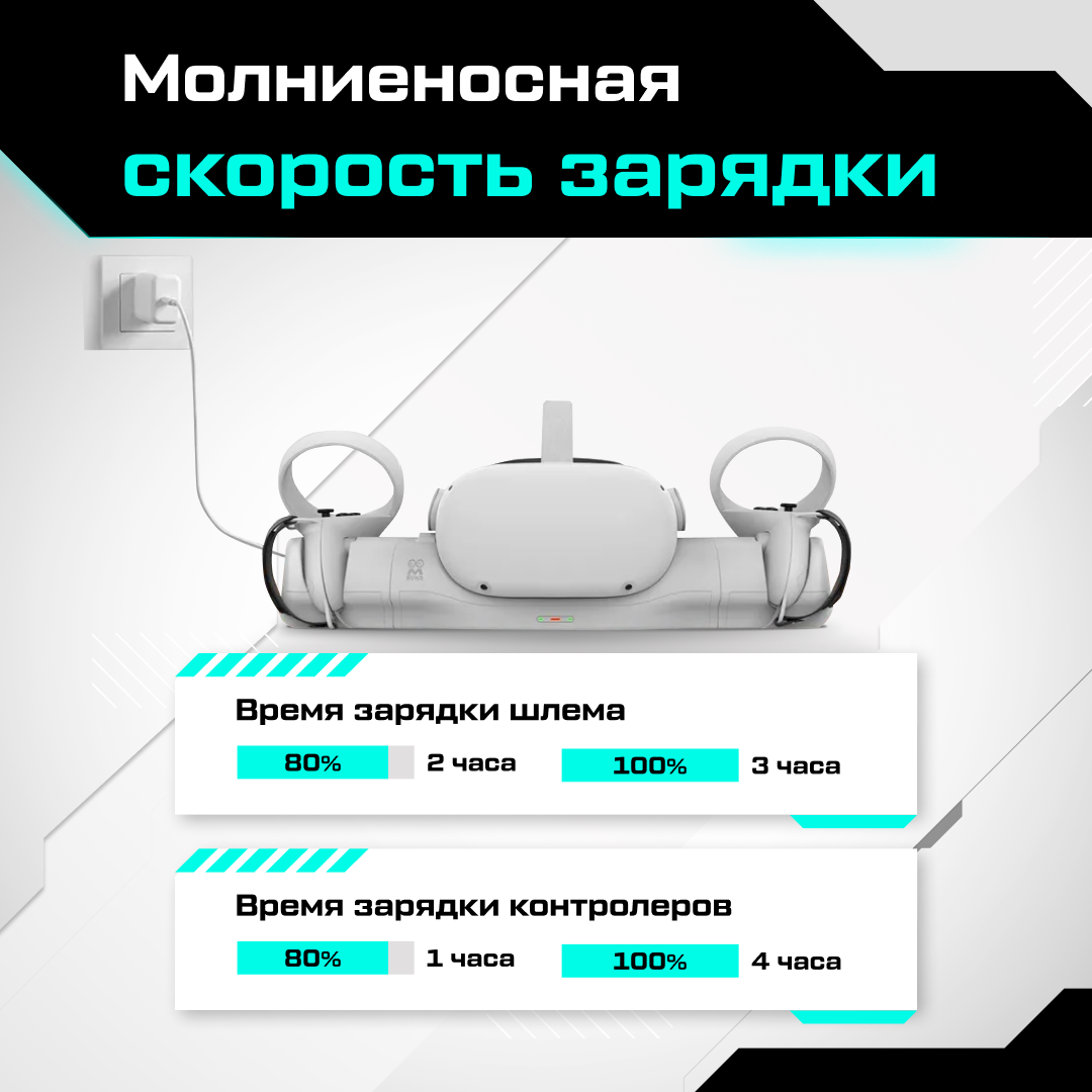 | Комплектация | зарядная площадка AMVR для Quest 2, 2 крышки батарейного отсека, магнитный разъем USB-C для гарнитуры, 2 перезаряжаемых батареи АА, 2 кожаных ремешка на запястья, 4 эластичные веревки |