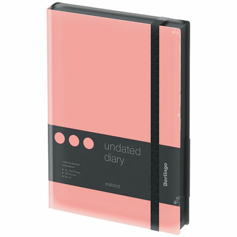 Ежедневник недатированный A5 136 листов, кожзам, Berlingo "Instinct", черный/фламинго, с резинкой