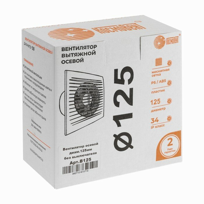 Вентилятор вытяжной "КосмоВент" В125, d=125 мм, 220 В, без выключателя