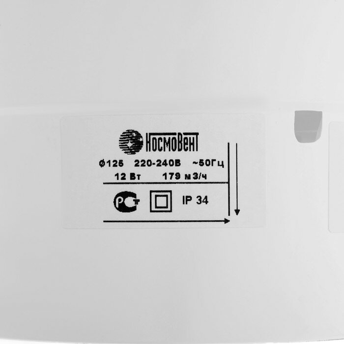 Вентилятор вытяжной "КосмоВент" В125, d=125 мм, 12 Вт, 40 дБ, 188 м³/ч, без выключателя