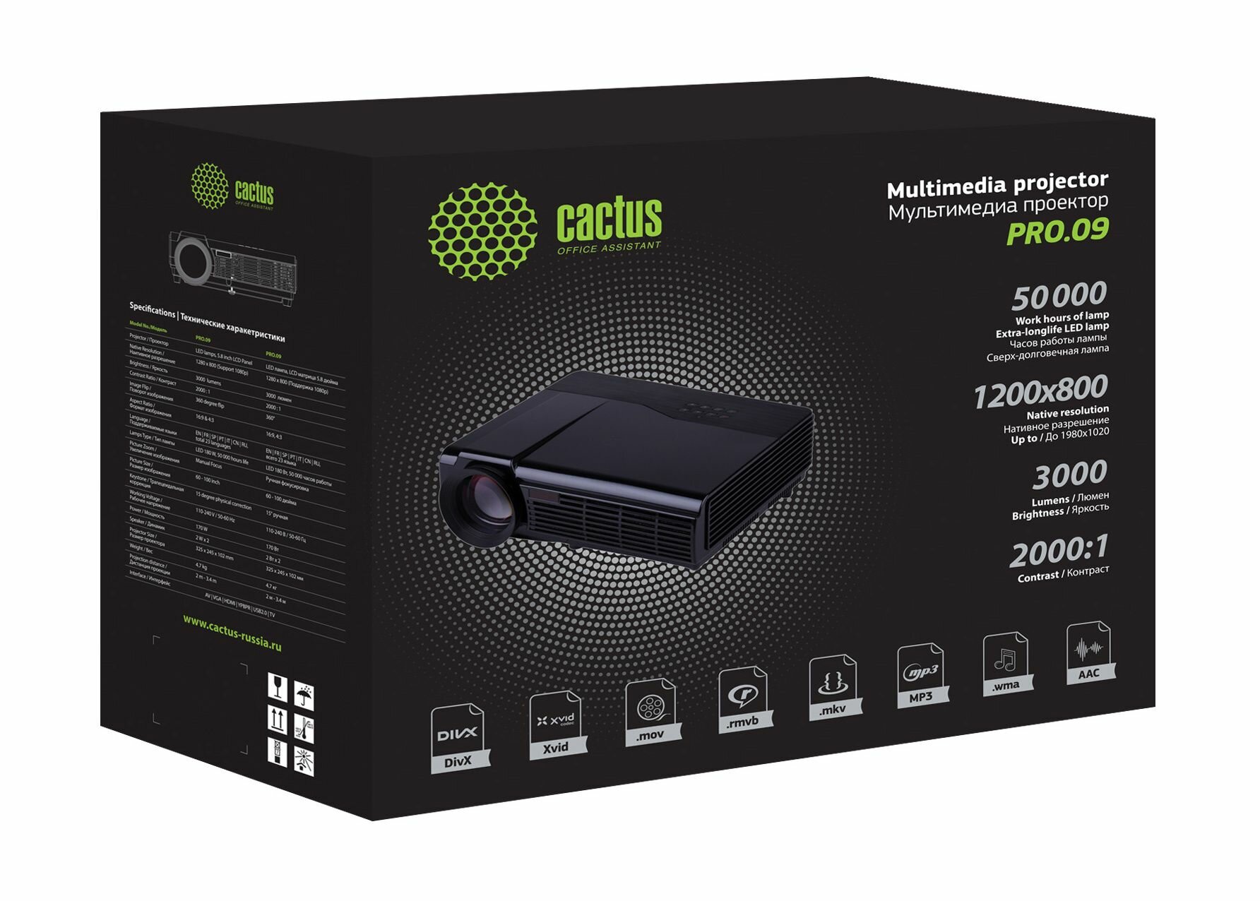 Проектор Cactus CS-PRO.09B.WXGA-W LCD 3000Lm (1280x720) 2000:1 ресурс лампы:50000часов 2xUSB typeA 2xHDMI 4.7кг интересное: