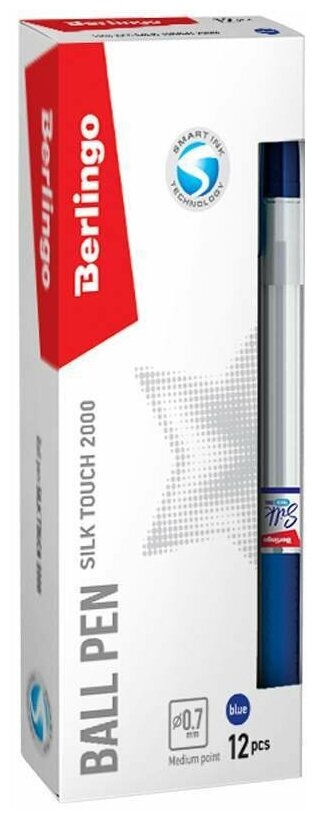 Ручка шариковая Berlingo "Silk Touch 2000" синяя, 0,7мм, игольчатый стержень, грип - 12 шт.