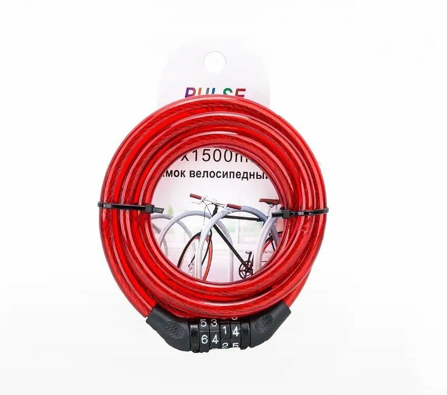 Купить Велозамок Трос противоугонный, диаметр троса 10x1500мм, кодовый красный