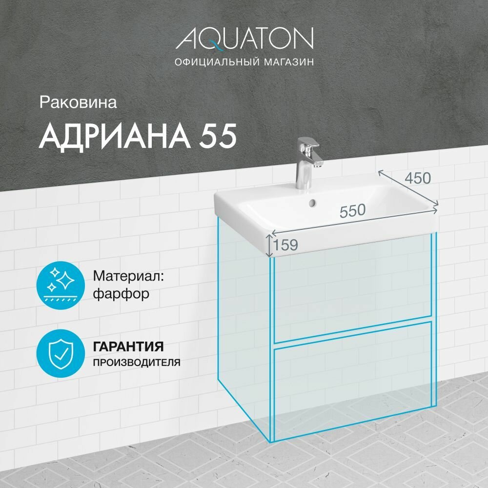 Раковина мебельная AQUATON Адриана 55х45х17, фарфор, цвет Белый 1WH501620