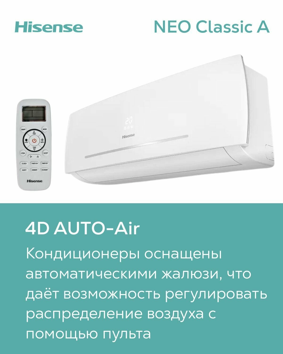 Настенная сплит-система / кондиционер серии Neo Classic A, Hisense, AS-07HR4RYDDC00