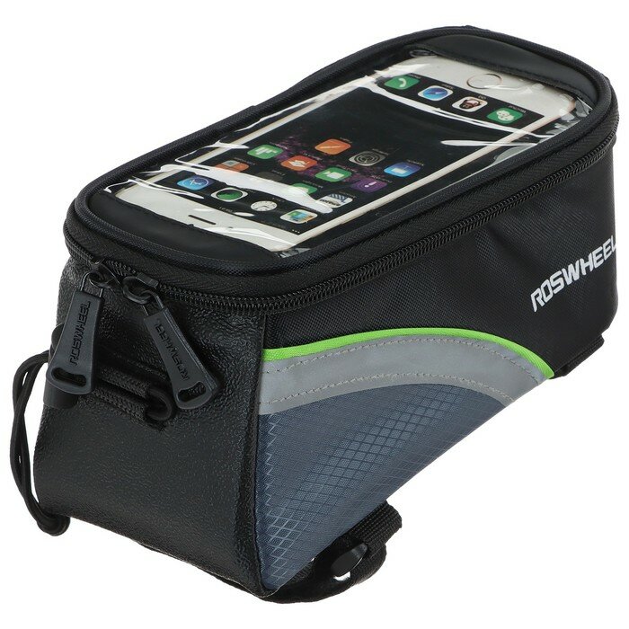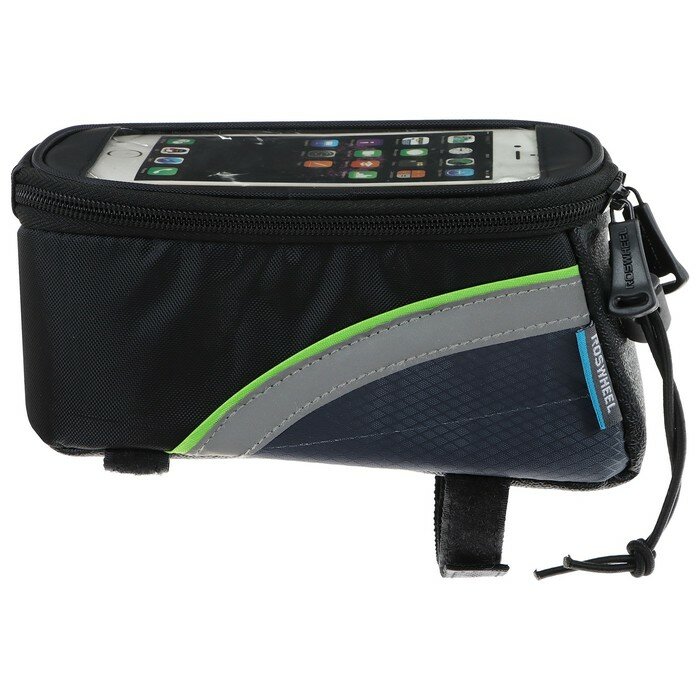 Велосипедная сумка Roswheel на раму размер L (9х10х19.5 см, чёрный/зелёный) интересное: