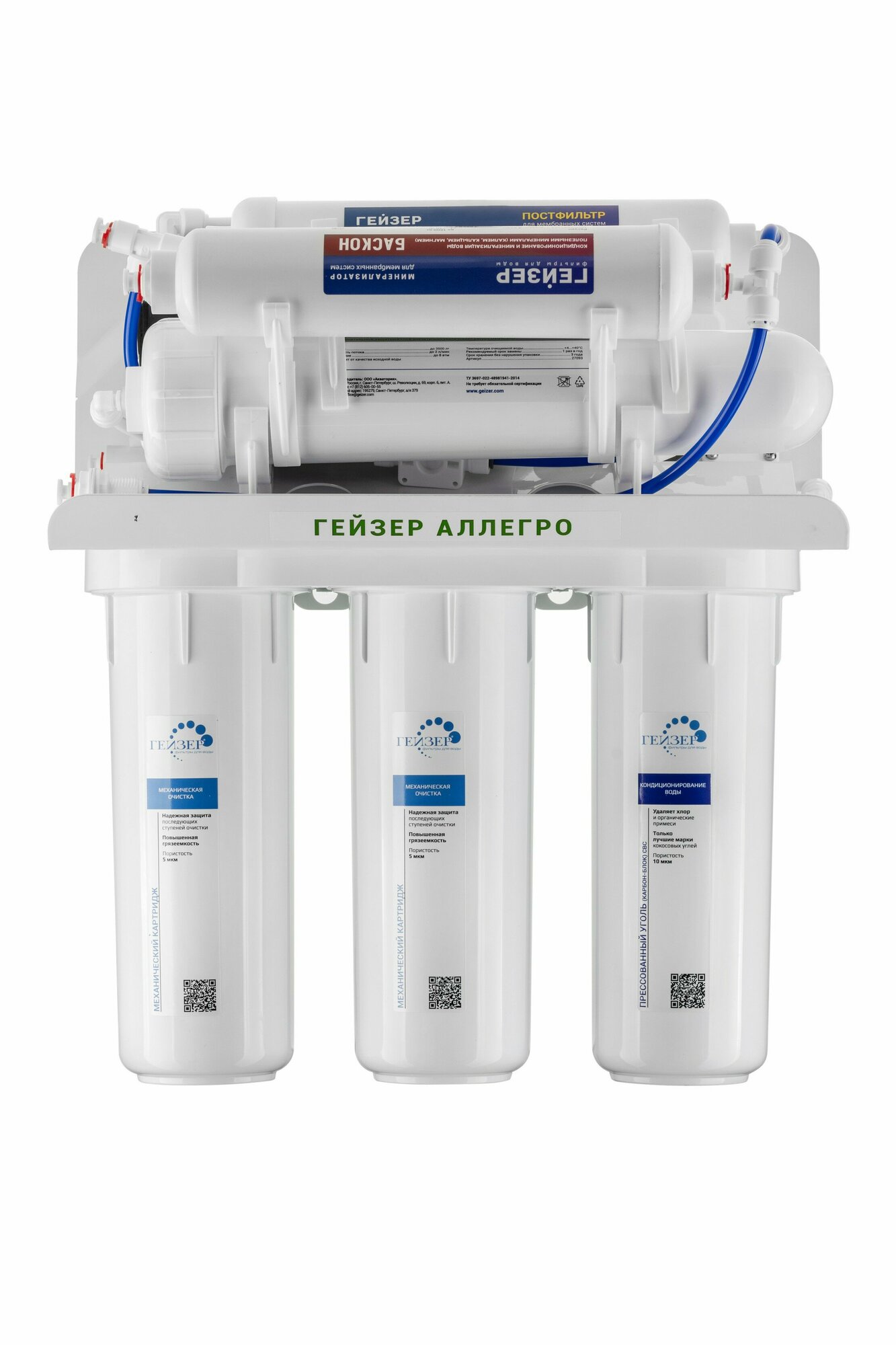 | Функции очистки | минерализация / обезжелезивание / обратный осмос / угольная фильтрация |