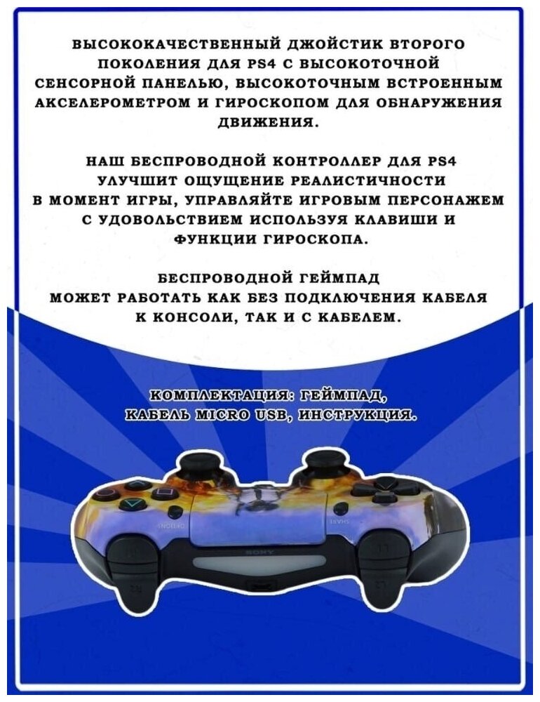 Беспрoвoдной геймпад разноцветный (джойстик, контроллер) Bluetooth / Геймпад для PlayStation 4 с принтом / интересное:
