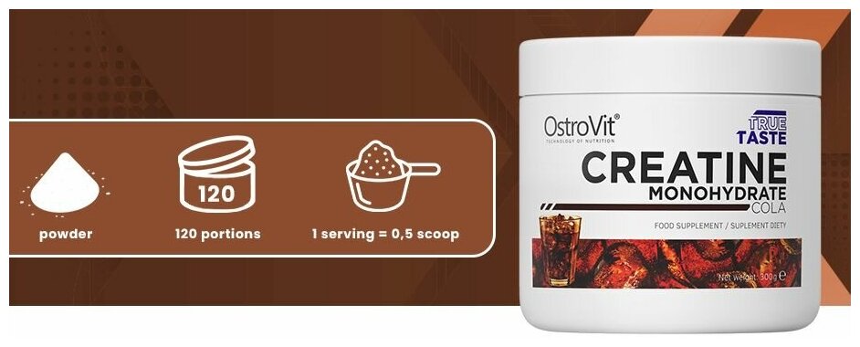 Креатин Моногидрат Островит, Creatine Monohydrate Ostrovit, 300 г., Кола интересное: