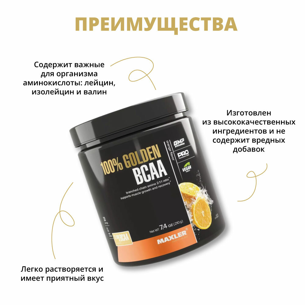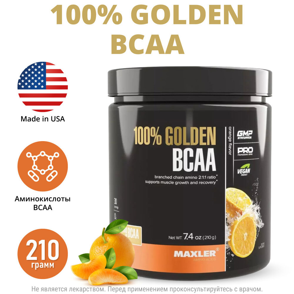 Аминокислоты Maxler 100% Golden BCAA - Апельсин, 210г - БЦАА в соотношении 2:1:1 - В форме порошка - 30 порций
