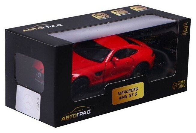 Машина металлическая MERCEDES-AMG GT S, 1:32, открываются двери, инерция, цвет красный (1 шт.) интересное: