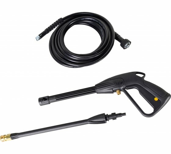 мойка высокого давления, пистолет-распылитель, шланг высокого давления, 2 форсунки, пеногенератор, игла для прочистки пистолета от грязи, переходник для садового шланга, фильтр, инструкция
