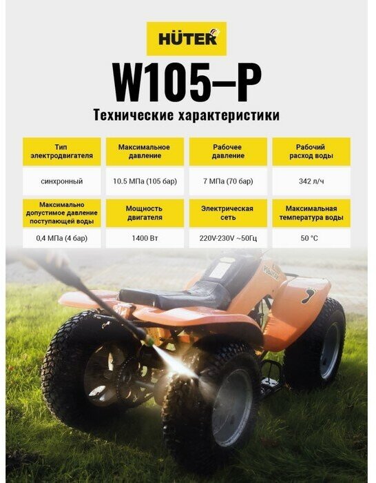 Мойка высокого давления Huter W105-P, 105 бар, 342 л/ч, самовсасывающая 70/8/3 интересное: