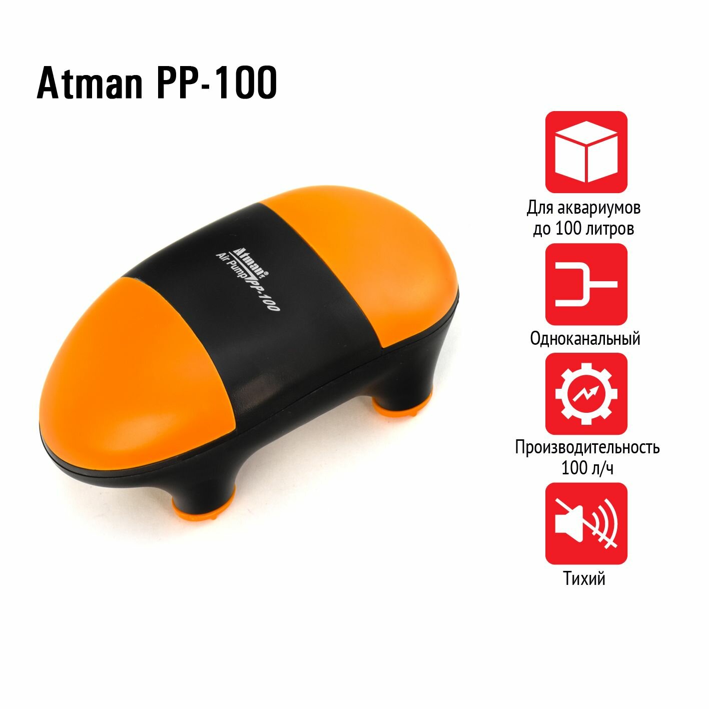 Компрессор супертихий Atman PP-100 одноканальный нерегулируемый 100 л/ч (1 шт)