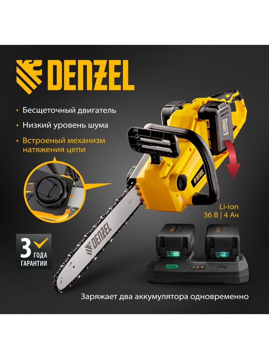 Купить Цепная пила аккумуляторная бесщеточная RCS400-36, Li- ion, 36 В, 4 Ач, шина 400 мм Denzel 58610