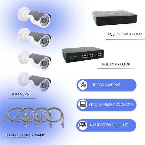 Купить Комплект видеонаблюдения IP c 4 антивандальными камерами