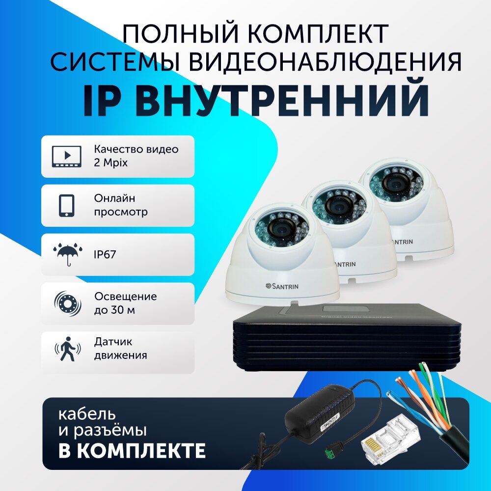 Купить Комплект видеонаблюдения цифровой, готовый комплект IP 3 камеры купольных FullHD 2MP