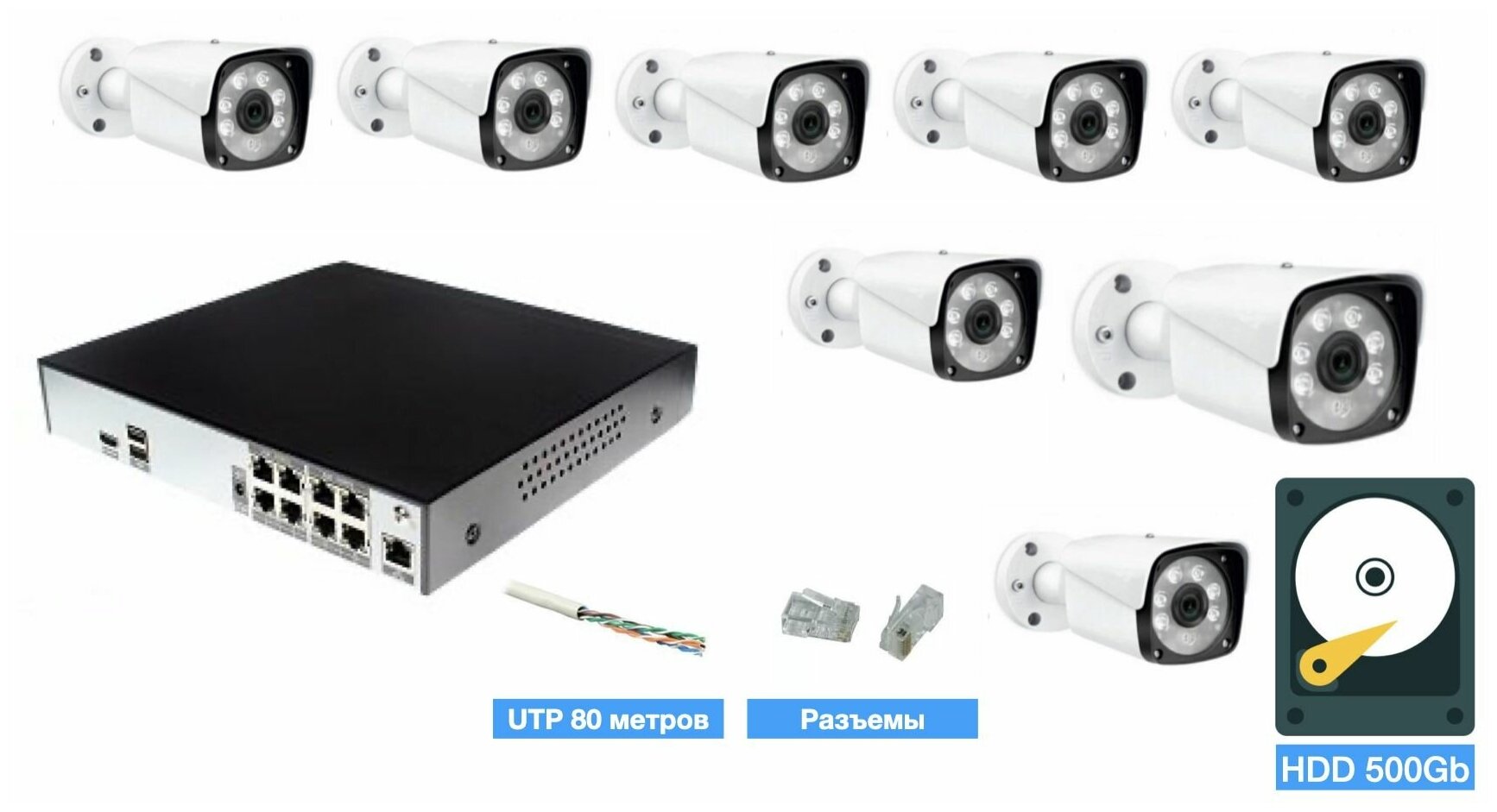 Полный IP POE комплект видеонаблюдения на 8 камер (KIT8IPPOE20MB3_HDD500GB_UTP-2) интересное: