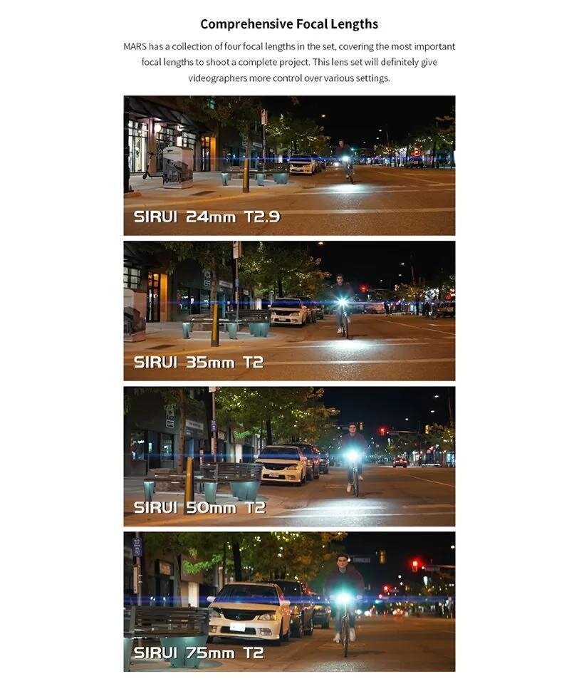 Комплект объективов Sirui Mars (Anamorphic 24/35/50/75mm) Micro 4/3 интересное: