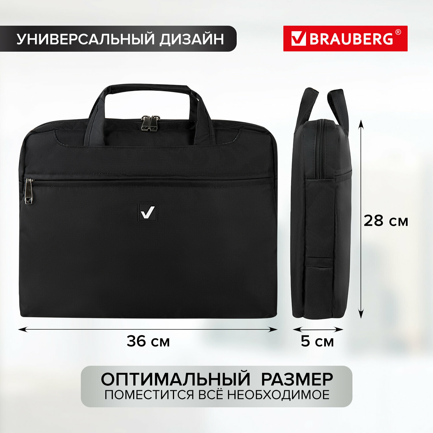 Сумка-портфель BRAUBERG с отделением для ноутбука 13-14", "Chance", 3 кармана, черная, 36х28х5 см, 240455 В комплекте: 1шт.